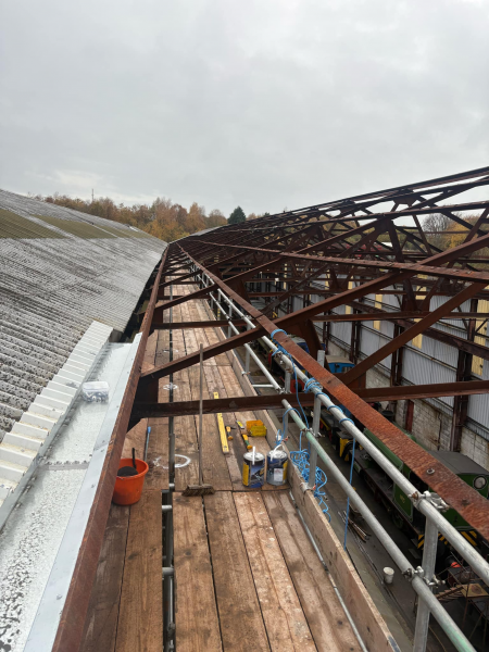 The Matthew Kirtley Building (MKB), the Main Exhibition Hall at the Midland RailwayButterley is in urgent need of roof and guttering repairs. In periods of heavy rain, water pours into the building and is causing massive damage to the building’s main structure and the vehicles it houses.